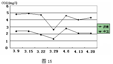 1、综合题  图15是山东济南、宁夏中卫两监测站观测黄河水质(COD的数值越大,则水体污染越严重)状况曲线图。读图完成下列各题。