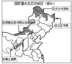 5、单选题 该图是我国四个限制开发的国家级重点生态功能区。据此完成问题。