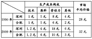 5、单选题 下表为深圳和合肥两地某工业品的成本构成和市场价格。读表完成1—2题。