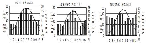 材料二?卢茨克、基洛夫格勒、格尼切斯克三地的气候图。