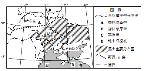 (1)据材料一、材料二简析乌克兰自然植被的分布特点及原因。(8分)