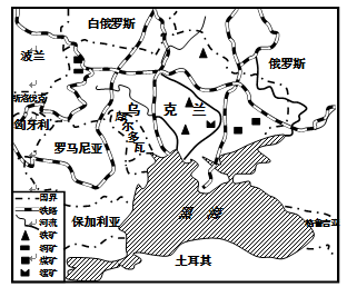 (4)乌克兰石油、天然气产量不足,主要依赖进口(2分);国际市场油价不断上涨(2分);乌克兰工农业均较发达,工业中以重工业为主,能源需求量大(2分);乌克兰能源利用率低(2分)。(答对任意3点可得6分)