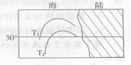 2、单选题 下图为世界某大陆西岸沿海地区,T1、T2为洋流流经区域的等温线。据图回答下列问题。