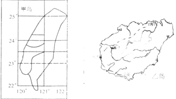 小题1:根据图示的河流分布判断地势高低,甲岛河流多自东向西流,判断东高西低;乙岛河流呈放射状,判断地势中高周低。