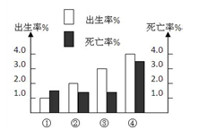 3、单选题 图为四个国家的人口出生率和死亡率图,完成问题。