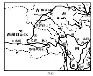 A.高铁因速度优势,在短距离运输中占优势 B.因航空运输价格高,长距离受高铁影响较大 C.航空运输因速度快,在长距离运输中优势明显 D.高铁与航空运输互补,互不干扰 4、综合题 读“进藏铁路线(已建或待建)方案示意图”和相关资料,完成下列问题(15分)