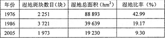 某区域内湿地呈斑块状分布。表中的数据反映该区域湿地的变化。