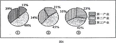 3、综合题 图6示意20世纪90年代后期我国三个经济地带的产业结构,读图回答问题。