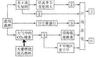 3、综合题 读“环境问题示意图”,完成下列问题。(9分)