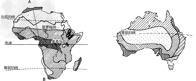 4、综合题 读下列“世界上两块大陆自然带分布图,回答问题。?