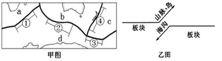 小题2:乙图属于板块交界处的一种类型,箭头表示板块的运动方向,下列说法正确的是
