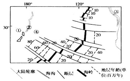 D.⑤处受板块挤压隆起,地层年龄较轻