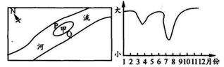 A.受副极地低气压带控制 B.受极地高气压控制 C.受副热带高气压带控制 D.受东北信风带控制 3、单选题 下图为我国某河流河道示意图,甲为一河心沙洲,右图为该沙洲一年内面积变化统计图,读图完成下列小题。 |