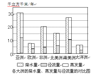 5、综合题 读各大洲的降水、蒸发及径流量的对比图,回答:(8分)