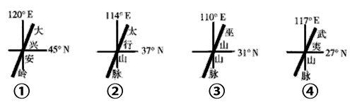 1、单选题 下图为“我国四条重要的山脉位置示意图”,回答1—2题。