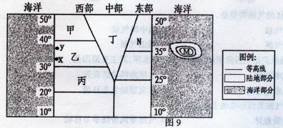 4、综合题 读某理想大陆图(图9),回答下列问题。(12分)