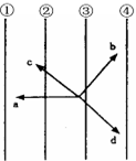 4、单选题 图为某气压场受力平衡时的风向图,其中①、②、③、④为四条不同的等压线,判断下列叙述正确的是