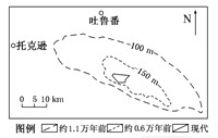 5、单选题  艾丁湖的存在对吐鲁番盆地绿洲的维持具有重要作用。下图是1万多年来艾丁湖变迁示意图。读图,回答1—2题。