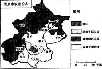 (3)北京不同地区的农业各具特色。远郊山区主要发展防护林,核桃、柿子、板栗、梨等经济林木,说