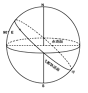 【小题2】飞船高空飞行时,轨道倾度(轨道平面与地球赤道平面的夹角)约42°,则当时所处的纬度为42°S。由于第二次到达最南点的纬度不会变,所以仍然为42°S。甲第一次到达最南点的经度为90°W,由于地球在自转,所以第二次落下的经线位置会发生变化,飞船运行周期约90分钟,地球自西向东转过22.5°。那么最南点的位置会向西退相同的度数,结果为42°S,112.5°W。
