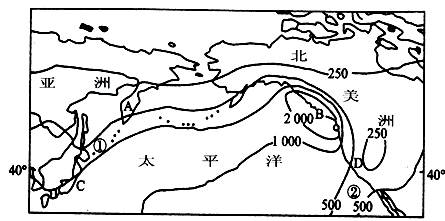 (1)根据等降水量线分布状况比较A、B两地降水量的差异并分析原因。(12分)
