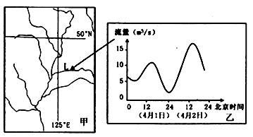 2、单选题 图甲为某河流局部示意图,图乙为图甲中L河流一水文站某年测得的连续两日流量变化图。读图完成下列各题。