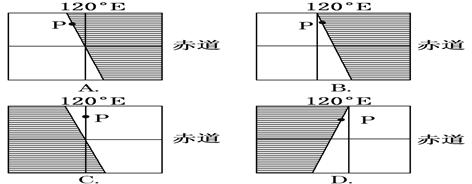 【小题2】此时北京市可能是下列哪幅图中的点P位置(图中阴影部分表示夜半球)(  )
