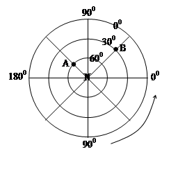 本题解析:由图中信息可以判断,逆时针为自西向东,A点的地理坐标为(60°N,135°E),B点的地理坐标为(30°N,45°E),A点在B点的东北方向,正确答案选B。