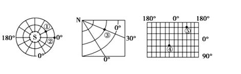 A.bcda B.abcd C.dcab D.adcb 3、单选题 下图为“某区域年等降水量线图”(单位:mm),读图回答问题。 4、单选题 读下面三幅经纬网示意图,①~⑤各地,地理坐标相同的是 ( ) |