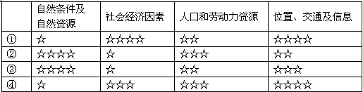 5、单选题 下表表示影响四个不同地区发展工业的主要因素(☆的多少表示优势的大小),读后回答下列各题。