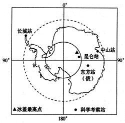 3、单选题 2012年11月5日至2013年4月9日,中国南极考察队开展了第29次科学考察活动,并利用天文光学望远镜获得观测数据。读下图,回答下题。