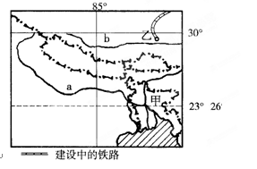 小题2:a、b两河流域之间的山脉,其南坡雪线比北坡低的主要影响因素是(?)