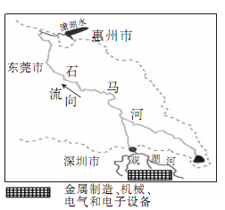 5、单选题 2012年2月及6月,由中山大学和日本广岛大学共同组成的研究人员先后从石马河流域上游出发,沿河道一直到惠州潼湖水,采集了22个石马河河水样本。研究人员发现:靠近深圳处石马河重金属浓度为I类水质标准的32.87倍,流经深圳后,水质重金属污染指数逐渐降低。据图可知,该水体重金属污染物最有可能来源于