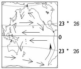 小题2:结合图示反映世界洋流分布规律:南北半球以副热带海区为中心的副热带环流,北半球呈顺时针,南半球呈逆时针;北半球以副极地海区为中心的副极地环流,呈逆时针。故A项正确。