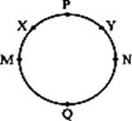 3、单选题 如图,PMQN为圆的四个等分点,X、Y分别是PM、PN的中点,回答问题。