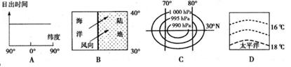 小题4:当冰岛被低压中心控制时,大陆形成高压,为北半球的冬季,太阳直射点位于南半球,所以中国南极中山站可能进入极昼期。所以本题选择D选项。