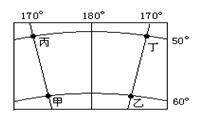 5、单选题 根据下图中甲、乙、丙、丁四地的地理位置,回答下列各题。