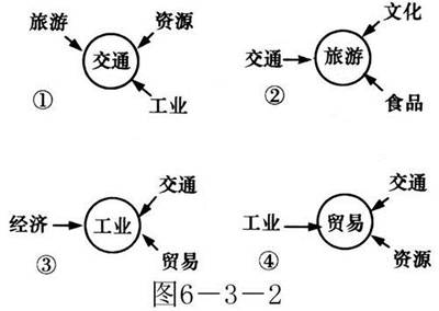 (3)图6-3-2中①-④表示B、C、D、E四城市的职能及区位。请合理搭配:
