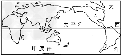 (1)在图中A、B、C、D四地填出下列数字所代表的农业地域类型:(填序号) ①混合农业②大牧场放牧业③商品谷物农业④季风水田农业 A_________,B_________,C_________,D_________.