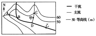 (3)AB、CD两河段长度相同,其中流速较快的是哪一河段?为什么?