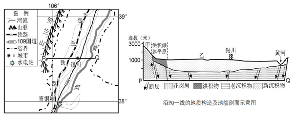 (1)说出甲、乙两地的地形类型并简述其主要成因。(6分)青铜峡铝业集团有限公司正与印度合作开发铝土矿,并在印度进行初加工。