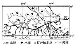 1.根据经纬度判断,图中北部地区为千沟万壑的黄土高原,该地区河网密布的成因是夏季降水集中,土质疏松,流水侵蚀严重。