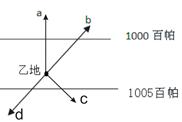 (2)若无c、d ,只受到a力作用,风向将与等压线________;其方向总是由__________指向__________。这种情况可能出现在 。
