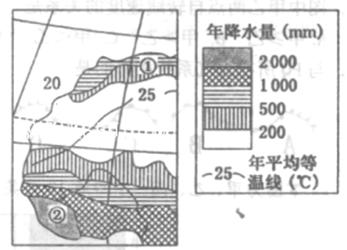 小题2:图中①②两地沿海地带自然植被分别是