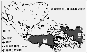 (1)描述西藏地区年降水量线的空间分布特点,并简述年降水量线明显向雅鲁藏布江上游凸出的主要原因。(6分)