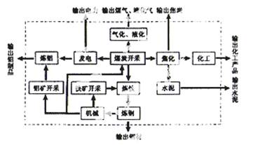 5、综合题 读山西省煤炭的综合利用图,如下图,回答下列问题(10分)。