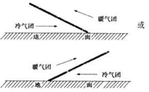 (2)2010年春季B地冷锋频繁过境,气温较常年偏低。试绘出冷锋剖面示意图(要求绘出锋面和冷、暖气团运动的方向)
