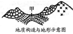 1.图中甲处的地质构造是2.图中甲处的地形在从成因上分析,主要是因为