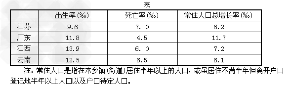 1、单选题 下表是“2009 年我国部分省份人口资料( 据国家统计局)”。读表完成1 ~2 题。