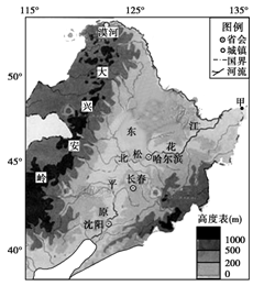 | 小题2:东北平原( ) A.地势中间高,南北低 B.冬冷夏热,伏旱严重 C.农业实行小农场经营,精耕细作 D.是中国重要的商品棉基地